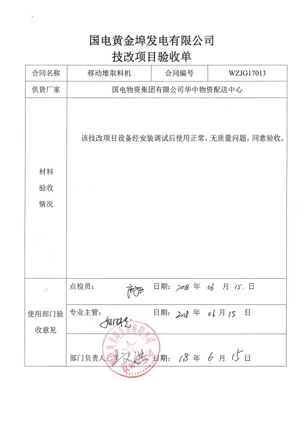 熱烈祝賀上饒黃金埠電廠800噸/小時移動堆料機順利交付