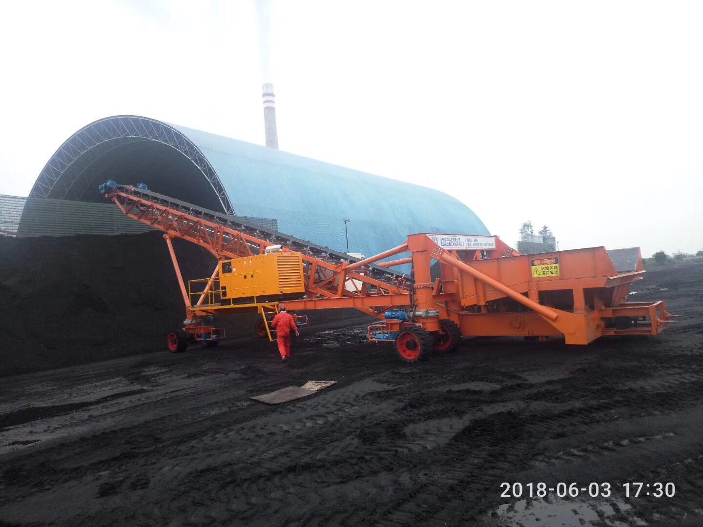移動散貨物料堆料機順利交付,該產品由松綁科技研發、松大重工制作安裝,解決了傳統散貨物料堆高難的問題。另外,該產品通過了兩項發明,兩項使用新型,切實解決了中小型碼頭、堆場、電廠堆料難題。該設備操作簡單靈活,可以遙控操作,可以原地打轉,直行,倒退,橫向行走,一臺設備代替了多臺挖掘機堆料,效率節約60%以上。
